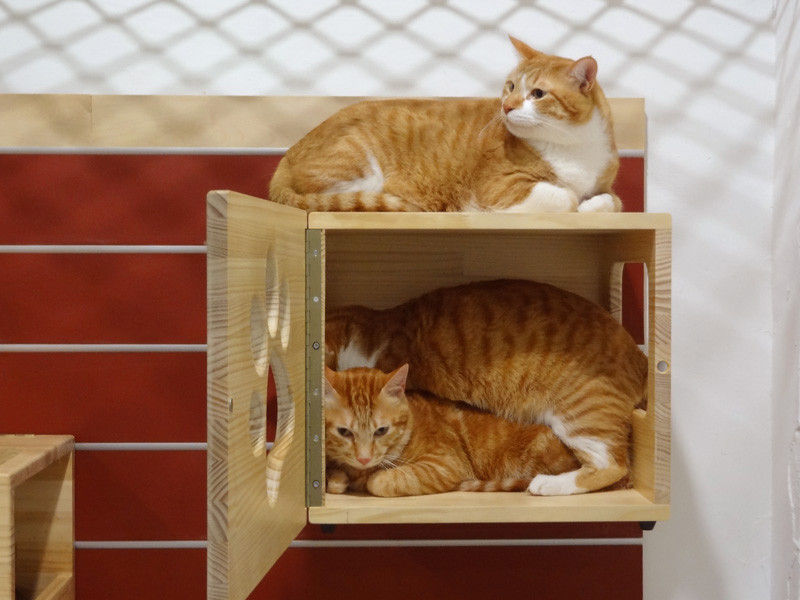 Clean-up is easy with damp cloth and mild detergent. Made for use in commercial shelters, all of the pine components are clear-coated and non-porous. Cats love the activity and you’ll love the contemporary look!
