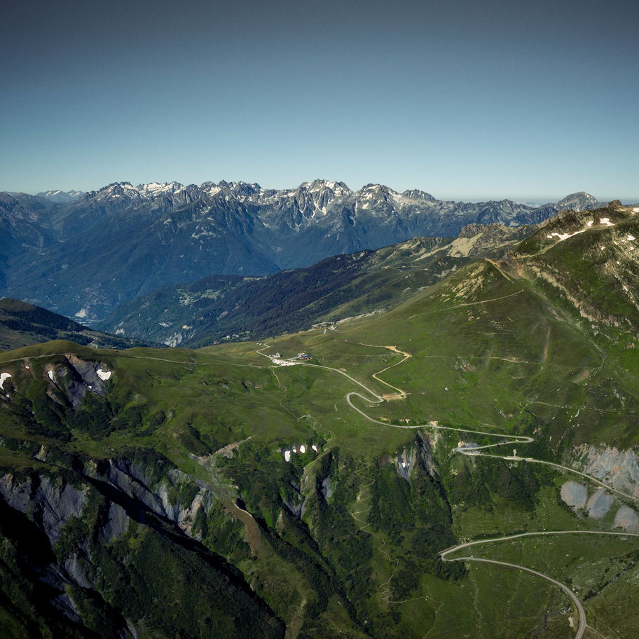 Col du Madeleine, a regular Tour de France feature but never a stage finish is a Col connecting the north to the south. This photograph is of the final few bends when riding from the north.
