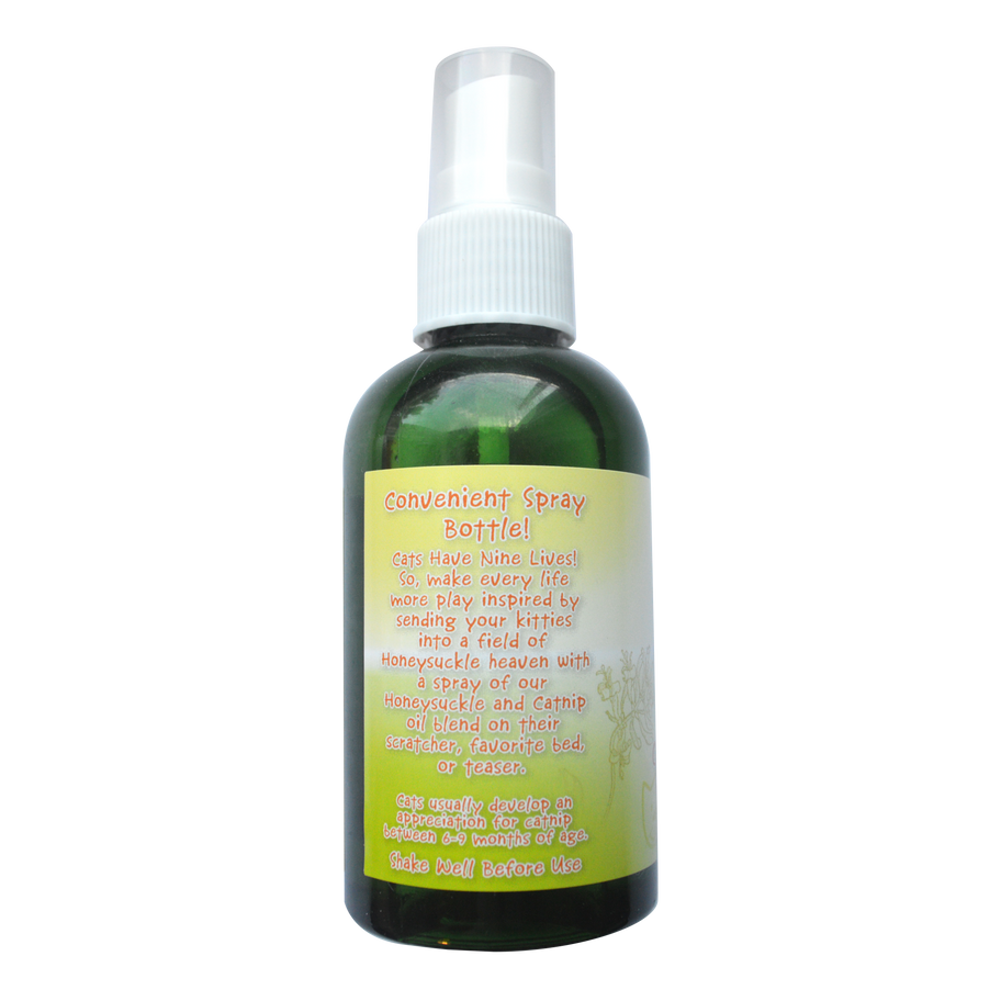 Cats have Nine Lives! So, make every life more play inspired by sending your kitties into a field of Honeysuckle heaven with a spray of Meowijuana Honeysuckle and Catnip oil blend on their scratcher, favorite bed, or teaser.