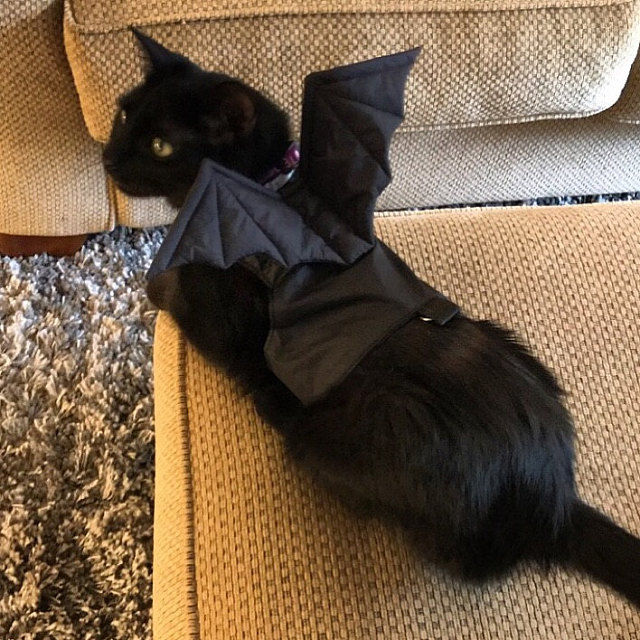 Add some whimsical fun to your cat's daily walk with the black Bat Wing cat walking jacket / harness by All Cats Good. This beautiful black cat walking jacket features detachable bat wings which allows it to double as a Halloween or fancy dress costume for your cat as well as a practical everyday walking jacket. Tailor made to your cat's precise measurements and designed with your cat's safety in mind, the harness is escape proof and easy to put on.