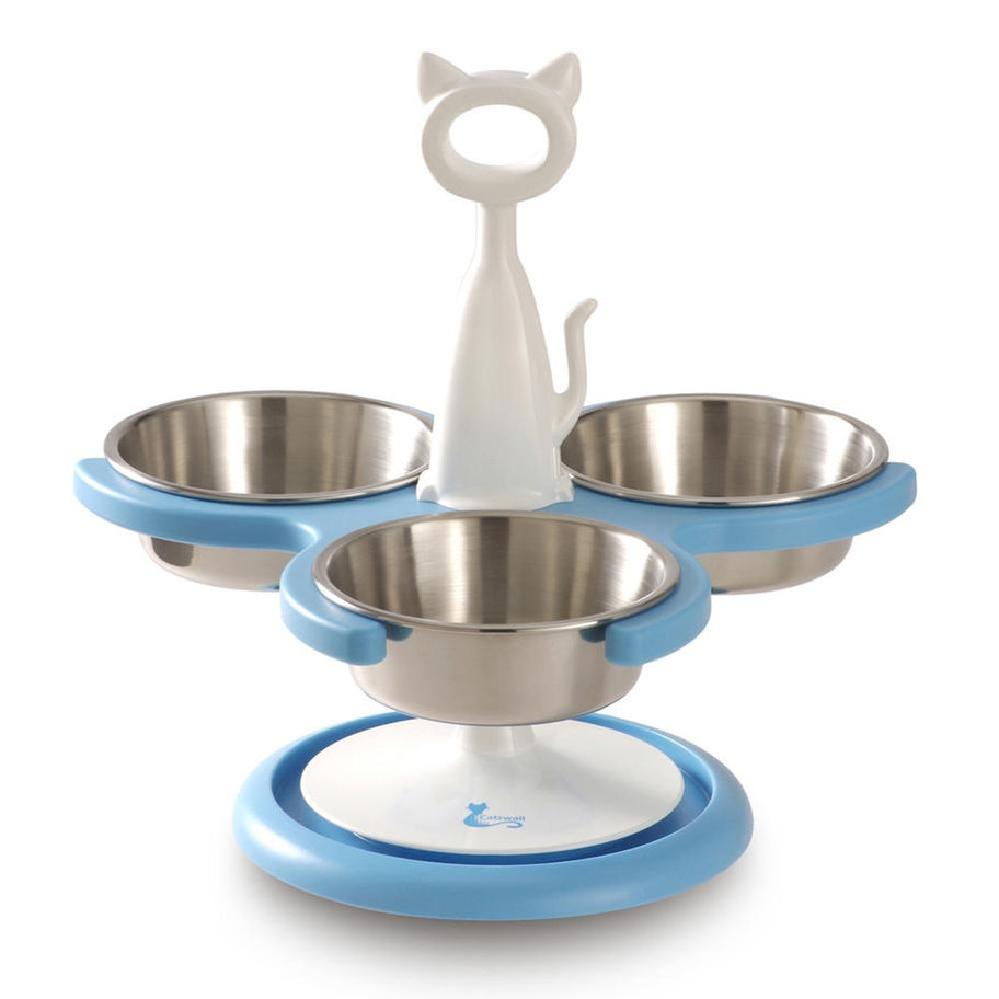 Catswall Design Multi-Cat Raised Feeder (3 bowl) Blue